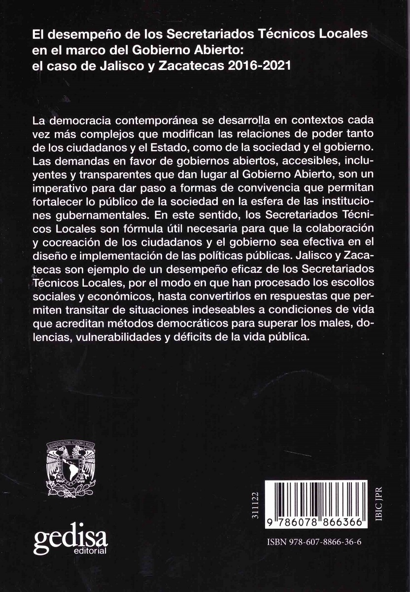 La democracia contemporánea se desarrolla en contextos cada vez más complejos que modifican las relaciones de poder tanto de los ciudadanos y el Estado, como de la sociedad y el gobierno. Las demandas en favor de gobiernos abiertos, accesibles, incluyentes y transparentes que dan lugar al Gobierno Abierto, son un imperativo para dar paso a formas de convivencia que permitan fortalecer lo público de la sociedad en la esfera de las instituciones gubernamentales. En este sentido, los Secretariados Técnicos Locales son fórmula útil necesaria para que la colaboración y cocreación de los ciudadanos y el gobierno sea efectiva en el diseño e implementación de las políticas públicas. Jalisco y Zacatecas son ejemplo de un desempeño eficaz de los Secretariados Técnicos Locales, por el modo en que han procesado los escollos sociales y económicos, hasta convertirlos en respuestas que permiten transitar de situaciones indeseables a condiciones de vida que acreditan métodos democráticos para superar los males, dolencias, vulnerabilidades y déficits de la vida pública.