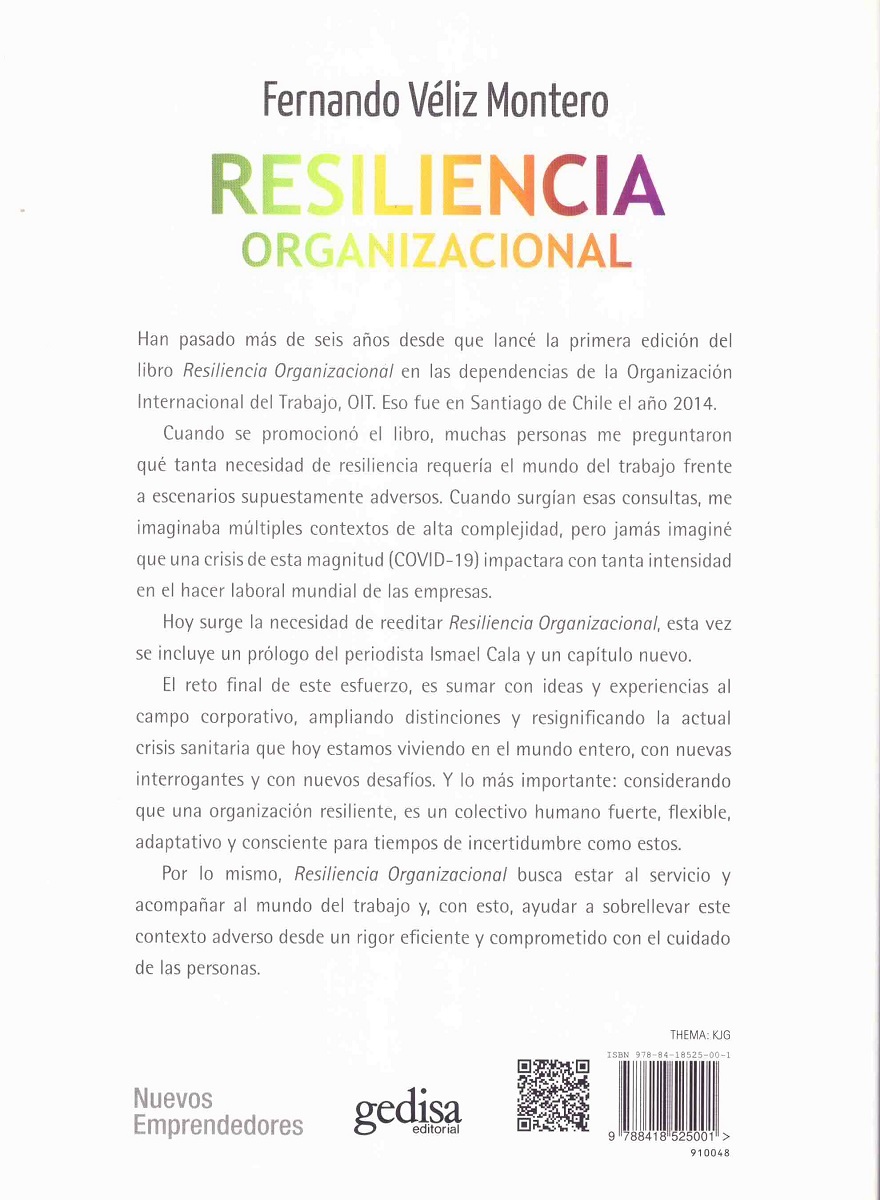 Obra que busca reflexionar sobre cómo construir y cuidar a grupos, empresas y organizaciones profesionales, haciéndolas internamente fuertes, en armonía, y verosímiles, fortaleciéndolas aún más, para lograr que perduren en el tiempo. El libro transita por temas tan importantes como el liderazgo, la ética, la comunicación, la confianza, los cambios, la calidad de vida, los equipos o la felicidad en el trabajo, entre otros. Él autor se basa en una metodología que tiene en cuenta tanto las necesidades de las personas como las de la propia organización para determinar los factores que permiten construir una experiencia laboral nutritiva y conseguir los objetivos marcados. Asimismo, se invita a abandonar el clásico paradigma laboral caracterizado por rutinas desgastadoras y sin sentido que llevan consigo el estrés, la desmotivación, la competitividad mal entendida, la desconfianza, la deslealtad, la baja productividad, etc. Finalmente, este libro muestra un modelo de intervención (MAR, Modelo de Acción Resiliente), con multiplicidad de casos teórico-prácticos para la acción y la reflexión, puestos al servicio de una empresa u organización