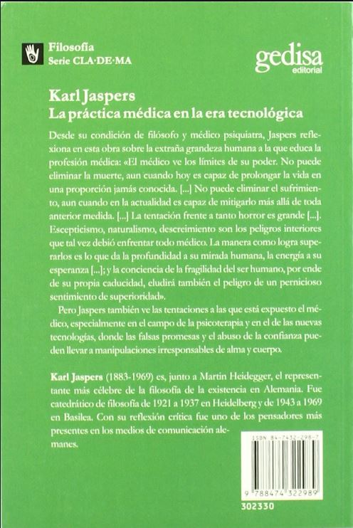 Los escritos de K. Jaspers -uno de los representantes más significativos del existencialismo- sobre la dignidad del paciente en su relación con el médico y su inserción en la era tecnológica, reunidos por primera vez en un volumen.