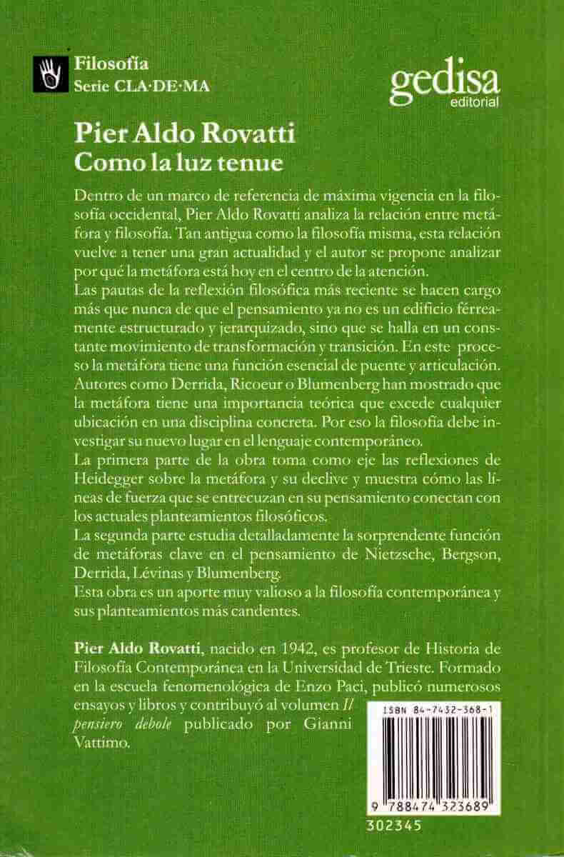 El autor explora el concepto de metáfora y su función: aborda, en especial, las referencias de Heidegger, pues es en ellas donde se entrecruzan muchos de los hilos que constituyen hoy el problema de la metáfora para la filosofía.
