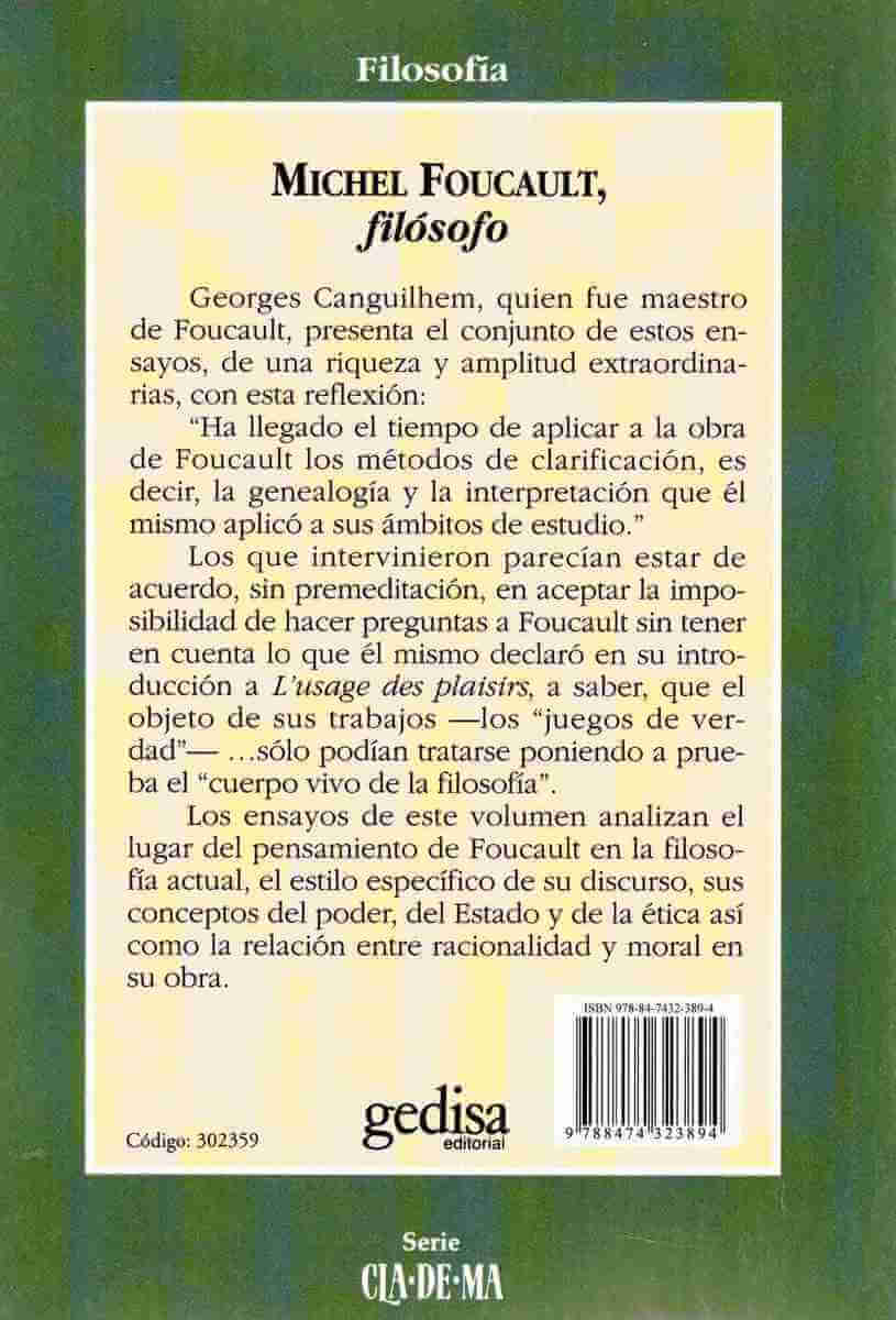 Los ensayos de este volumen analizan el lugar del pensamiento de Foucault en la filosofía actual, el estilo específico de su discurso, sus conceptos del poder, del estado y de la ética así como la relación entre racionalidad y moral en su obra.