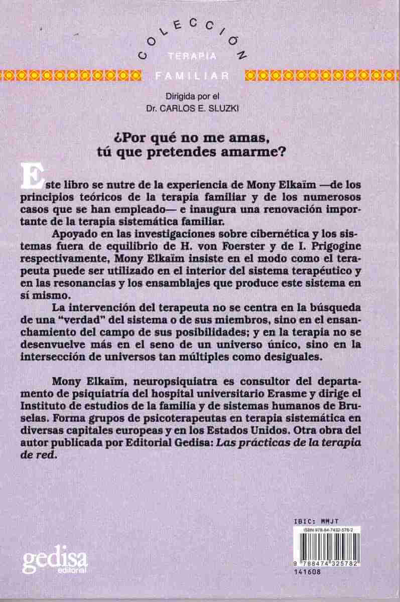 Este libro se nutre de la experiencia de Mony Elkaïm -de los principios teóricos de la terapia familiar y de los numerosos casos que se han empleado- e inaugura una renovación importante de la terapia sistémica familiar.