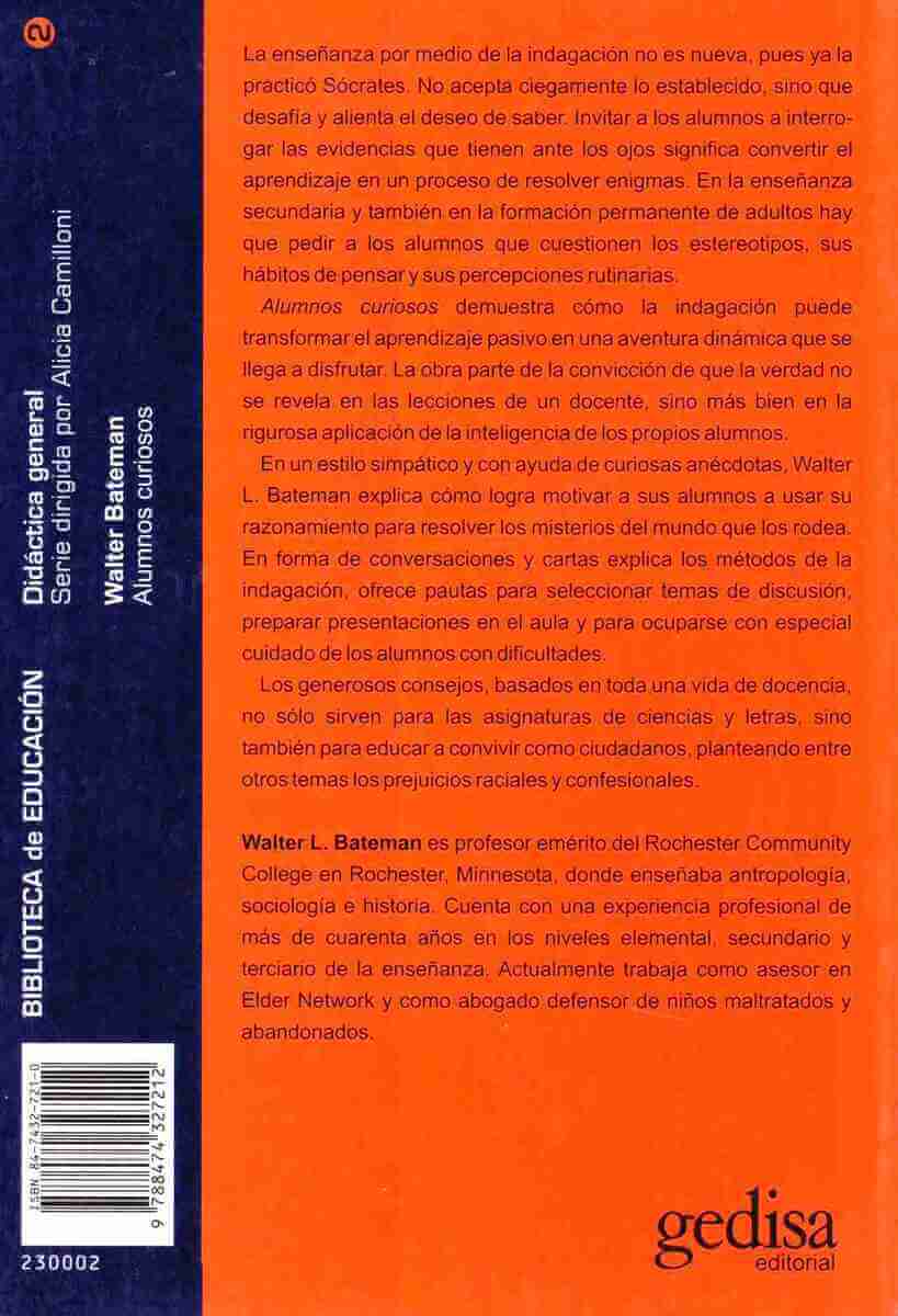 Alumnos curiosos demuestra cómo la indagación puede transformar el aprendizaje pasivo en una aventura dinámica que se llega a disfrutar. La obra parte de la convicción de que la verdad no se revela en las lecciones de un docente, sino más bien en la rigurosa aplicación de la inteligencia de los propios alumnos.