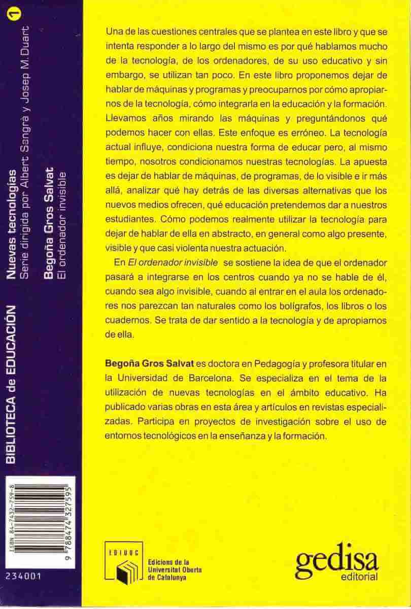 El libro está dividido en dos partes. En la primera, mirando lo visible, se analiza la introducción del ordenador en el ámbito educativo a través del objeto en sí mismo. Mientras que en la segunda, hacia la invisibilidad, se proponen vías que permitan la apropiación real de la herramienta.