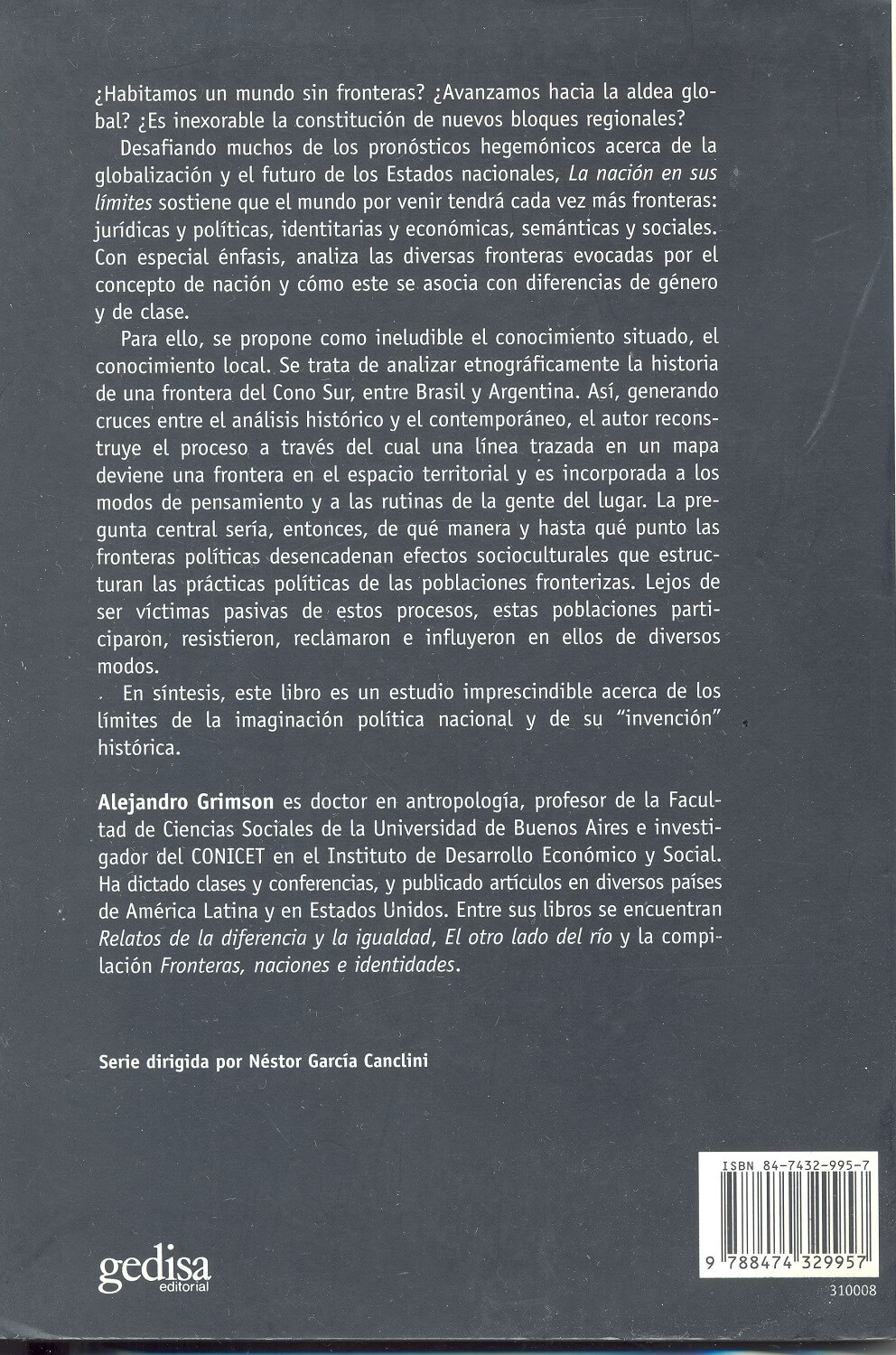 La nación es sus límites sostiene que el mundo por venir tendrá cada vez más fronteras: jurídicas y políticas, identitarias y económicas, semánticas y sociales. Con especial énfasis, analiza las diversas fronteras evocadas por el concepto de nación y cómo este se asocia con diferencias de género y de clase.