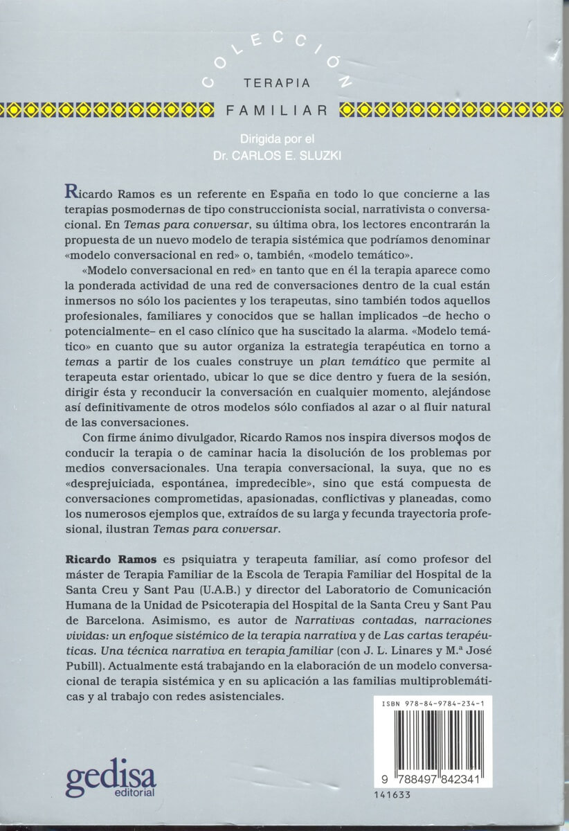 Ricardo Ramos es un referente en España en todo lo que concierne a las terapias posmodernas de tipo construccionista social, narrativista o conversacional. En Temas para conversar, su última obra, los lectores encontrarán la propuesta de un nuevo modelo.