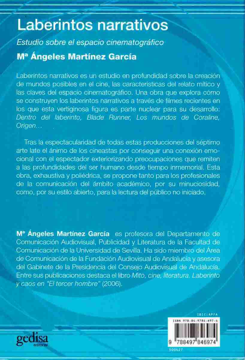 Laberintos narrativos es un estudio en profundidad sobre la creación de mundos posibles en el cine, las características del relato mítico y las claves del espacio cinematográfico.
