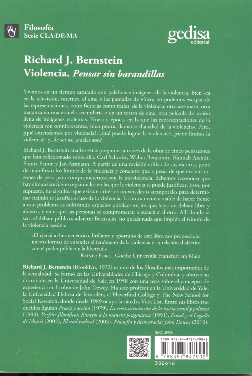 A través de la revisión crítica de sus escritos pone de manifiesto los límites de la violencia. Hay razones de peso para comprometernos con la no violencia y, sin embargo, al mismo tiempo tenemos que reconocer que hay circunstancias excepcionales en las que la violencia se puede justificar.