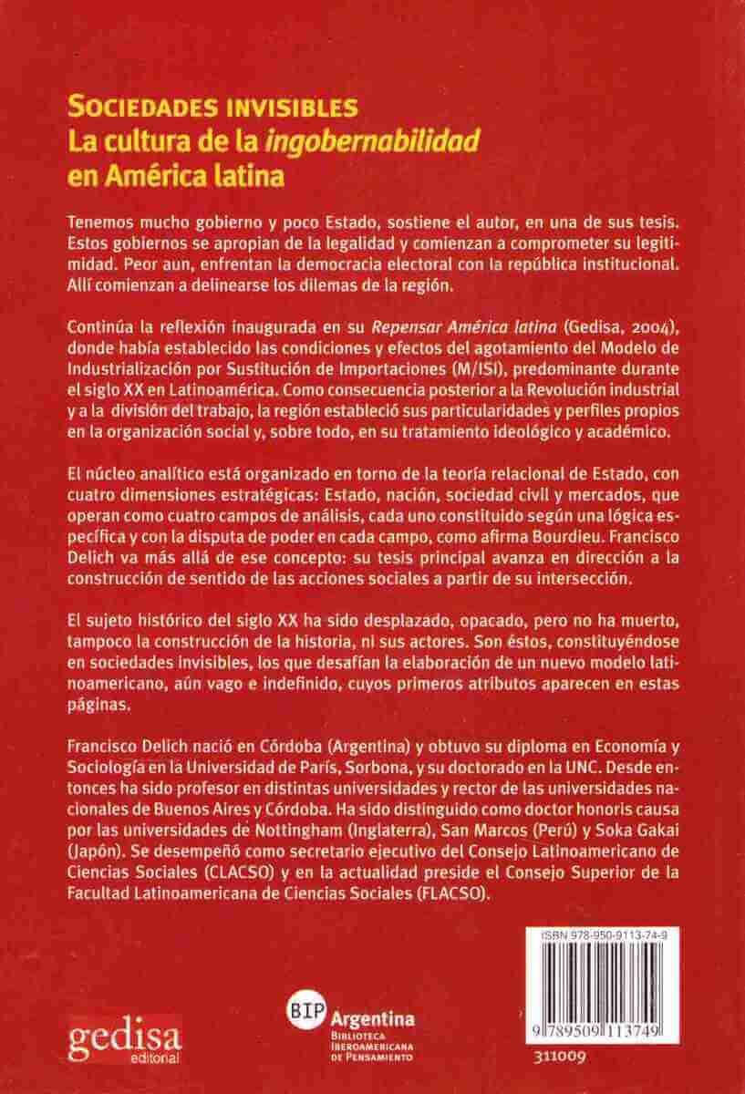 El sujeto histórico del siglo XX ha sido desplazado, opacado, pero no ha muerto, tampoco la construcción de la historia, ni sus actores. Son éstos, constituyéndose en sociedades invisibles, los que desafían la elaboración de un nuevo modelo latinoamericano, aún vago e indefinido, cuyos primeros atributos aparecen en estas páginas.